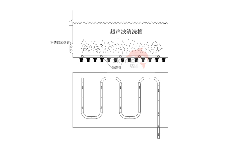 壓縮空氣通過鼓泡管小孔噴出,產(chǎn)生高壓氣泡,使槽子里的液體,呈翻滾狀態(tài),從而使質(zhì)量較輕的工件清洗更全面,也使沉積在工件表面的污漬能迅速剝離。