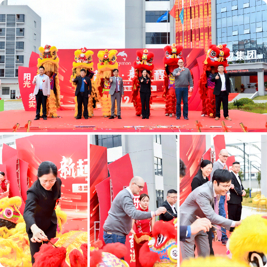 參與潔盟(韶關(guān))產(chǎn)業(yè)基地投產(chǎn)啟動儀式的領(lǐng)導(dǎo)嘉賓們受邀為祥獅點睛,沉睡的祥獅被喚醒,在鑼鼓聲中歡騰跳躍,登高采青獻祥瑞。潔盟集團董事長楊善順利接青,預(yù)示潔盟集團在新的發(fā)展征程中事業(yè)興旺,宏圖大展,鵬程萬里。